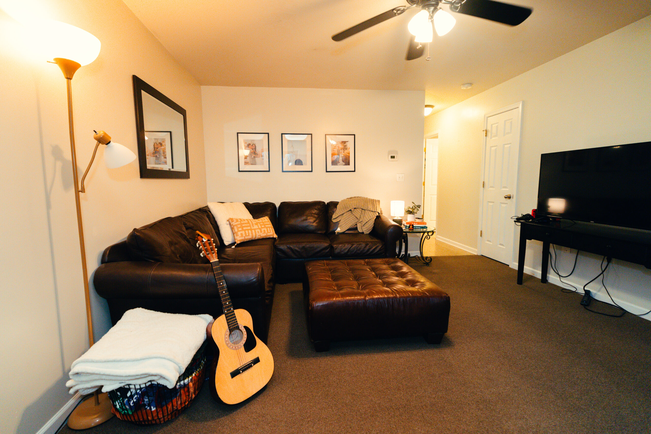 The Carriage Townhomes provide all the benefits of on-campus housing with an off-campus vibe. Each residence includes one double bedroom and two private bedrooms, a shared kitchen, and two full bathrooms. Units have on-site parking and are fully furnished and fitted with appliances, including washer and dryer, oven, and refrigerator.